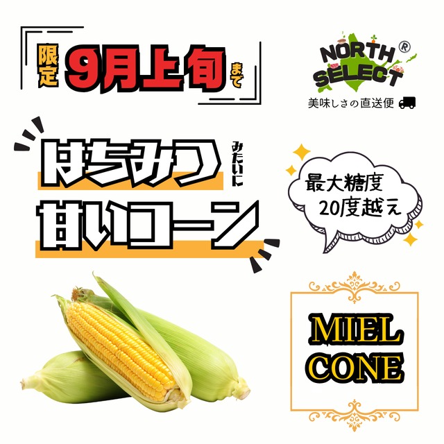 北海道直送 「ミエールコーン」 まるではちみつのような甘さとジューシーさ。 一粒ごとに、夏の北海道の恵みが詰まっています。 糖度17〜20度前後、まるでスイーツのような甘み。 生で食べても甘く、加熱すればさらに香りとコクが引き立ちます。 ※価格は1箱22本あたりの物です