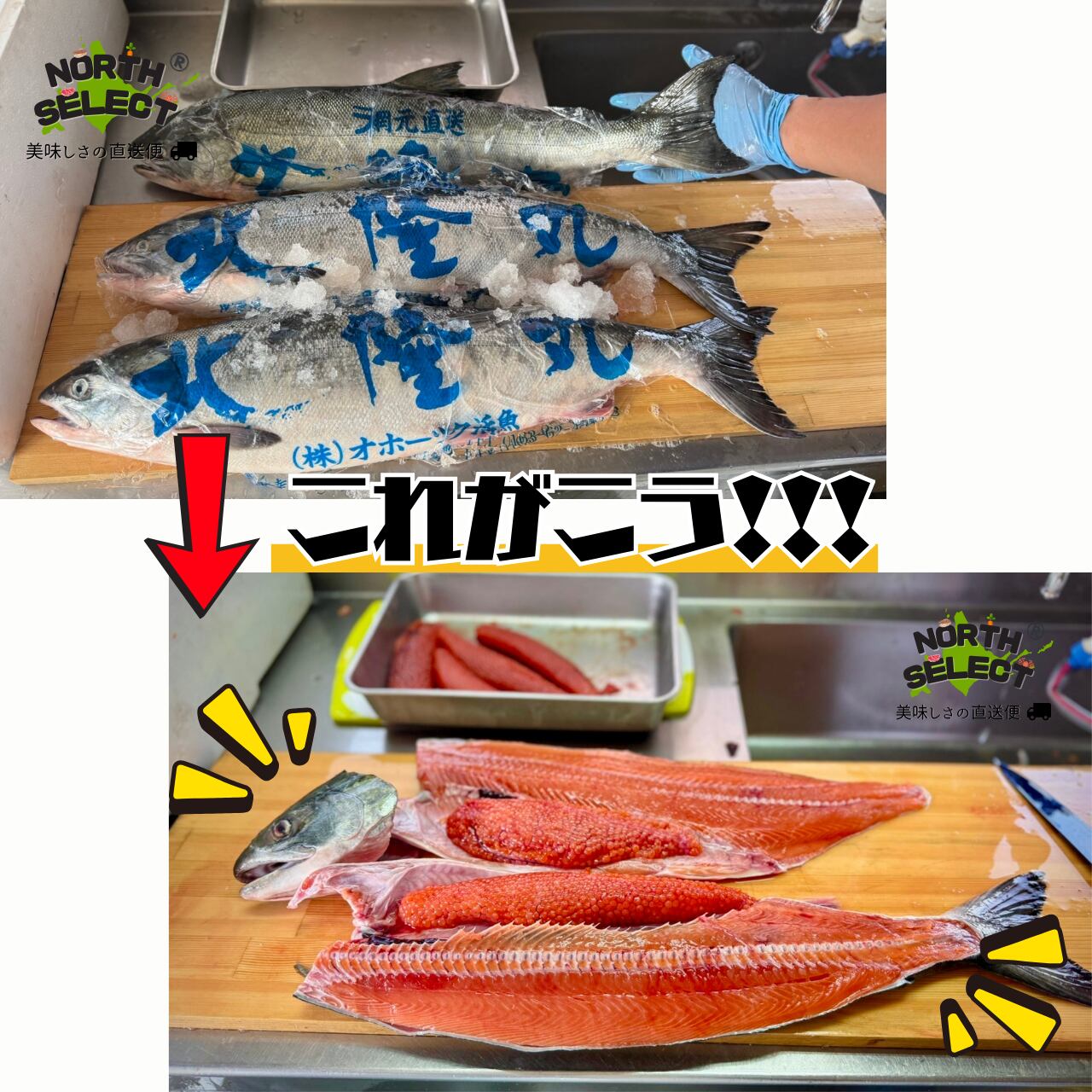 枝幸・北隆丸から直送の天然鮭といくらを、ぜひご家庭でお楽しみください。