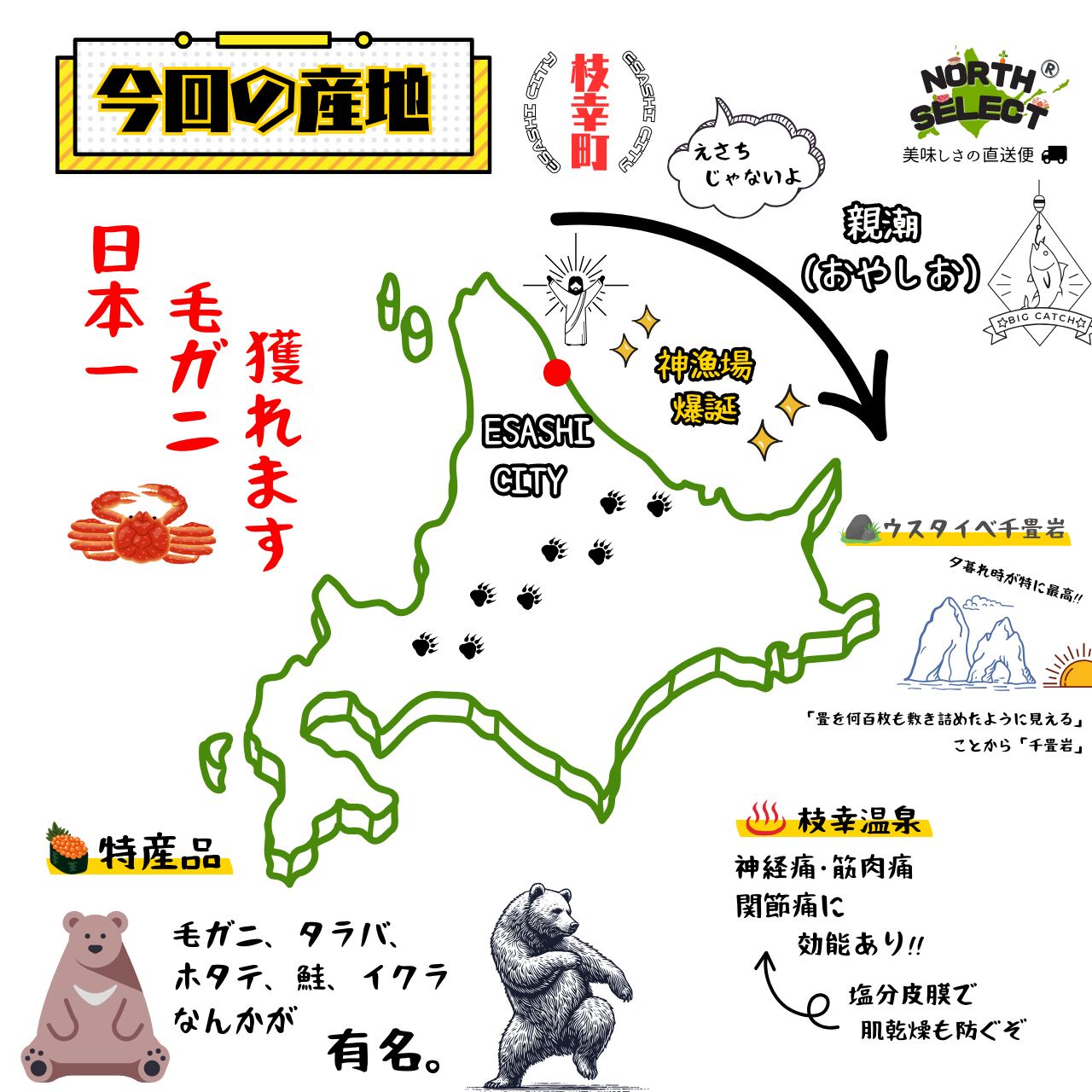 枝幸町は「日本一の毛ガニの町」として知られる海産物の宝庫。そんな漁師町から直送する逸品は、お歳暮やギフトにも大変喜ばれます。
